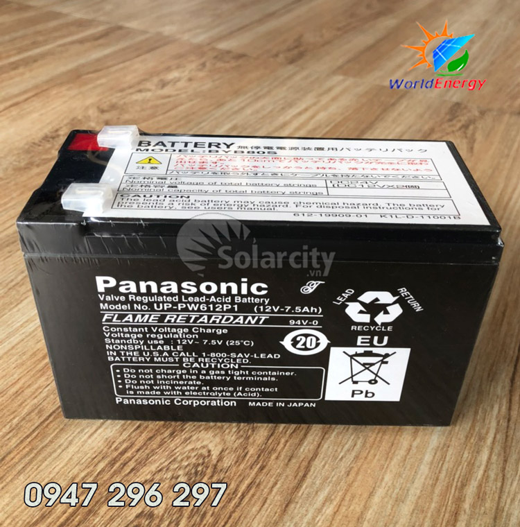 Bình ắc quy Panasonic 12V – 7.5Ah thuộc thương hiệu Panasonic, ắc quy kín khí miễn bảo dưỡng, sản xuất trên dầy chuyền công nghệ hiện đại, độc quyền của Panasonic cho bình có hiệu suất và tuổi thọ cao vượt trội.
