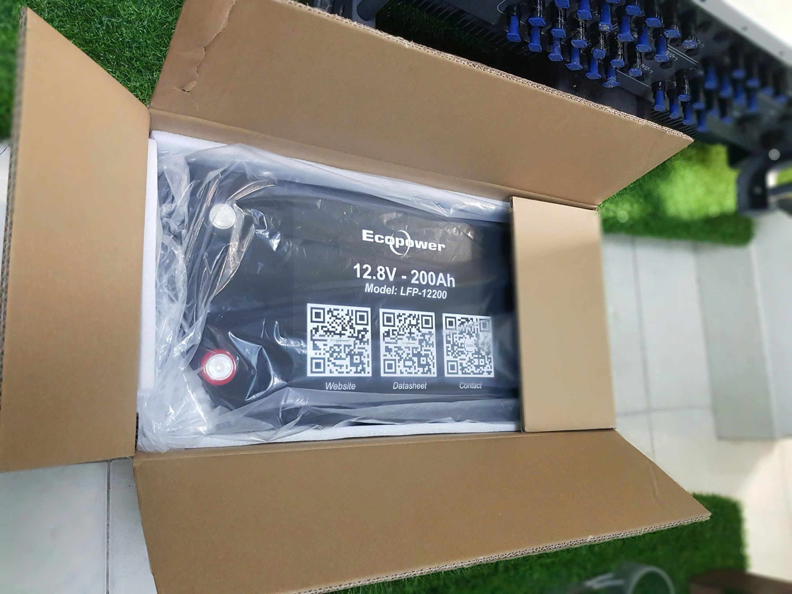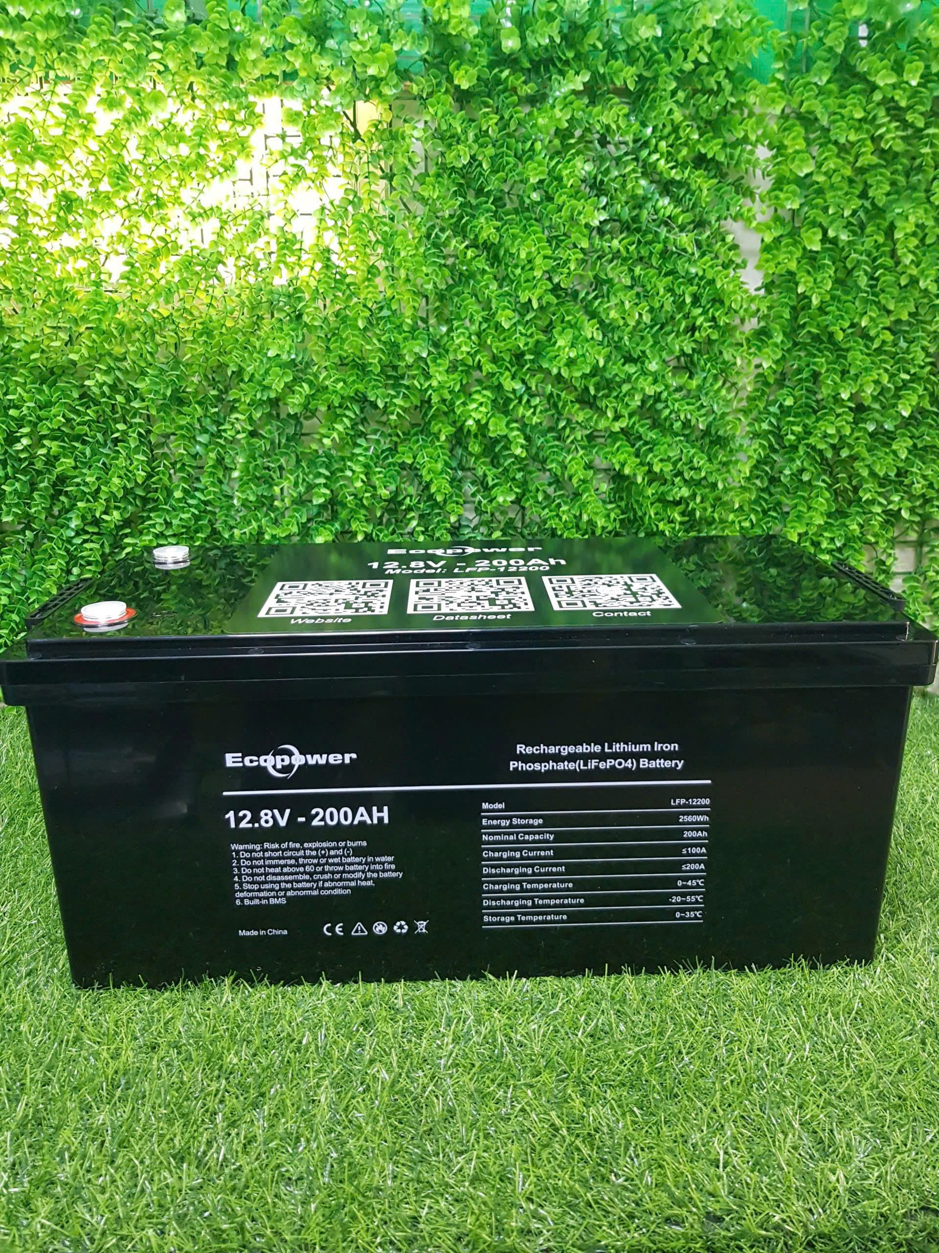 Mua pin Lithium Ecopower 12V 200Ah (LFP-12200) chính hãng, dung lượng 2.56kWh, tuổi thọ 4000 chu kỳ. Pin LiFePO4 hiệu suất cao, an toàn cho điện mặt trời và UPS.